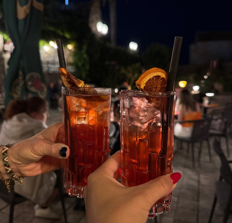 Ağaçların altında, loş ışıklar, chill müzikler, güzel kokteyller ✨🥃